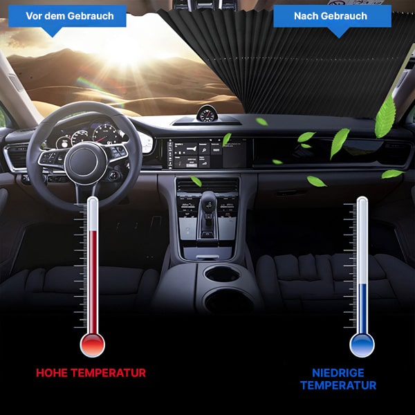 Unser Produkt blockiert effektiv schädliche UV-Strahlen, verhindert die Überhitzung und den Verfall Ihres Autos. Es hilft, das Innere kühler zu halten und reduziert erheblich Schäden an den Sitzen und dem Armaturenbrett Ihres Autos.