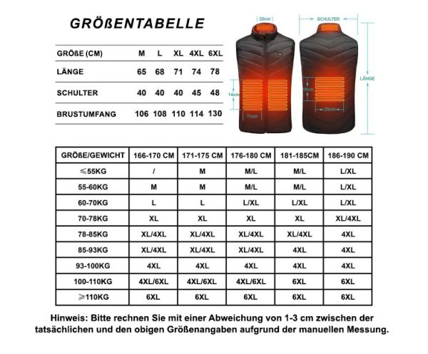 Diese Wärmeweste ist für eine Reihe von Aktivitäten geeignet. Verwenden Sie sie zum Spazierengehen, Wandern, Skifahren, Laufen, Angeln oder für jede andere Aktivität. Und natürlich eignet sie sich auch zum Tragen im täglichen Leben. Sie ist strapazierfähig, leicht, bequem und behindert Sie nicht bei Ihren Bewegungen.
