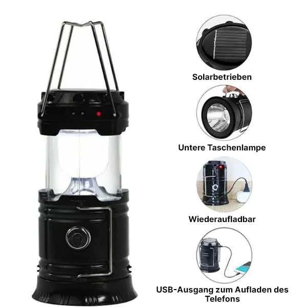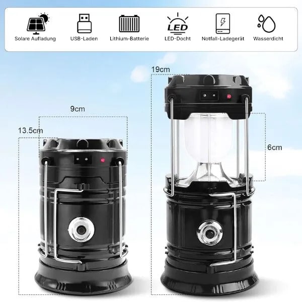 Wiederaufladbare Solar Camping Laterne+Taschenlampe | CAMPGLO