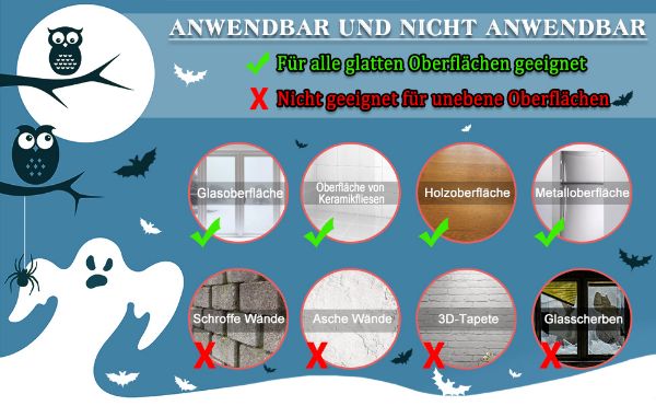 - Größe: Halloween Fensteraufkleber, bestehend aus 10 Aufklebern, je 21 x 29,5 cm