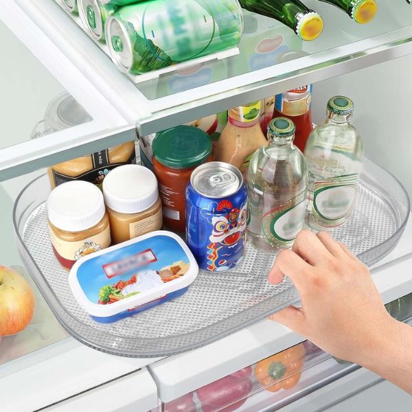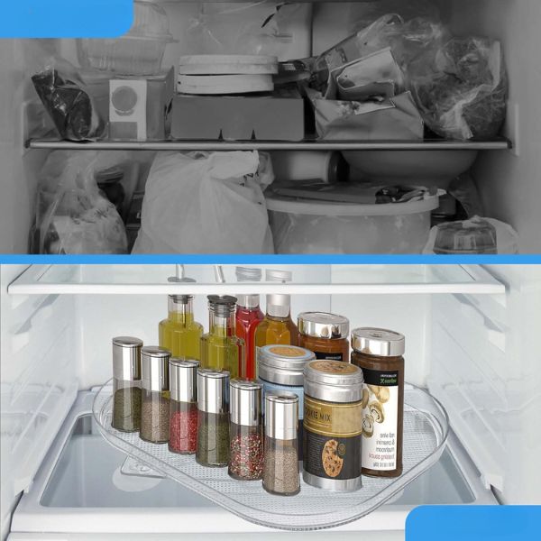 Halten Sie Ihren Kühlschrank ordentlich und aufgeräumt mit unserem transparenten, rechteckigen Kühlschranktablett. Dieser um 360° drehbare Kühlschrank-Organizer ist perfekt für den einfachen Zugriff und die maximale Platzausnutzung. Er ist einfach zu reinigen, hat rutschfeste Saugnäpfe und erfordert keine Installation.