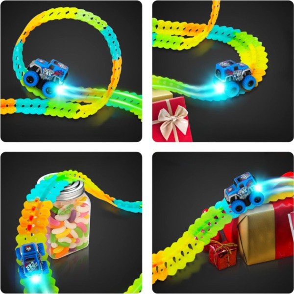 Verwandeln Sie die Spielzeit in ein leuchtendes Abenteuer mit der LUMITRACK. Diese 350 cm lange, leuchtende Bahn fesselt junge Köpfe und bietet endlose kreative Möglichkeiten.