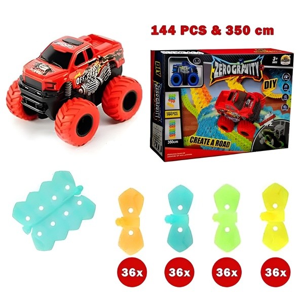 🚗 Sie erhalten – 1x LUMITRACK Auto + 144x Schienenteile