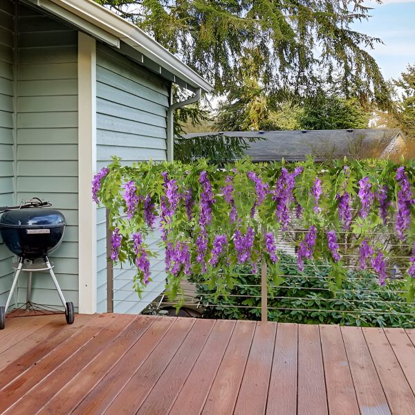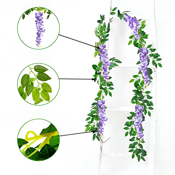 Sie müssen sich nicht mit Ranken oder Blumen herumschlagen, die verblassen und verwelken. Unsere Simulation von Glyzinien wird aus hochwertiger Seide und flexiblem Kunststoff hergestellt, damit sie ihre Vitalität für immer behalten. Diese langlebigen Blumen sind für eine lange Lebensdauer konzipiert und bieten Ihnen eine schöne und dauerhafte Dekorationslösung.