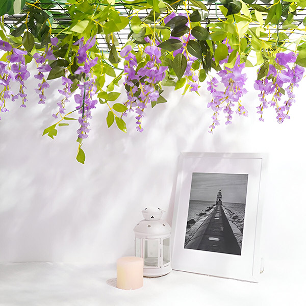 Möchten Sie beeindruckende Blumenarrangements kreieren? Die leuchtend violetten Glyzinien von WISBLOOM mit ihren üppigen grünen Blättern eignen sich perfekt zur Dekoration von Bögen, Spalieren, Wänden, Schaufenstern, Restaurants, Büros, Partys und vielem mehr. Die UV-beständigen und langlebigen Blumen können sowohl im Innen- als auch im Außenbereich verwendet werden und verleihen jedem Ambiente eine lebendige Note.