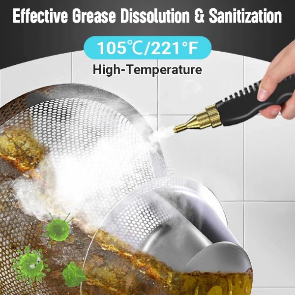 Die Nennleistung von 2500W erzeugt in weniger als 10 Sekunden Dampf bis zu 105℃ und entfernt schnell Fett, Schmutz, Staub und Flecken von verschiedenen Oberflächen.