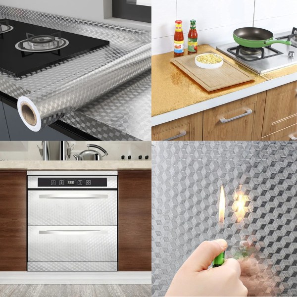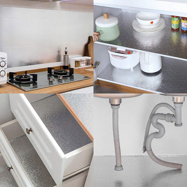 Verwenden Sie ALUMAX-Folie in Ihrer Küche, um zu verhindern, dass Öl- und Fettspritzer beim Kochen Ihre Schränke, Arbeitsflächen und Wände verschmutzen. Sie können sie sogar unter der Spüle anbringen, um Schimmel und Feuchtigkeit zu vermeiden.