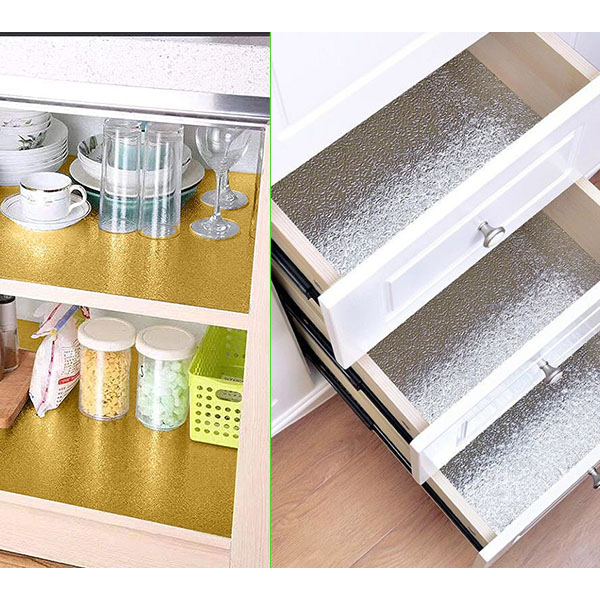 Bringen Sie ALUMAX-Folie im Inneren von Schubladen und Schränken an, um sie vor Staub, Schmutz und verschütteten Flüssigkeiten zu schützen und ihnen gleichzeitig ein glattes, glänzendes Finish zu verleihen.
