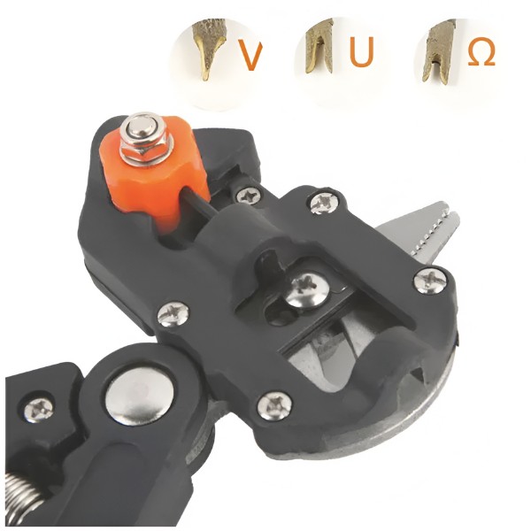 Dieses Werkzeug verfügt über 3 austauschbare Klingen (V, U, Ω), die verschiedene Schnittarten ermöglichen und es ideal für verschiedene Schneide- und Veredelungsaufgaben machen.