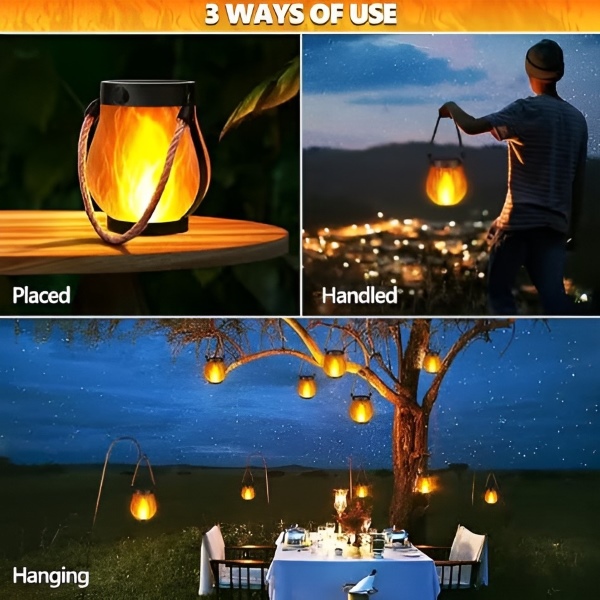 FLAMLUX Solarlaternen ahmen den hypnotischen Schein echten Feuers mit flackernden LED-Lichtern nach und schaffen eine magische Atmosphäre für deine Garten, Terrasse oder jeden Außenbereich.