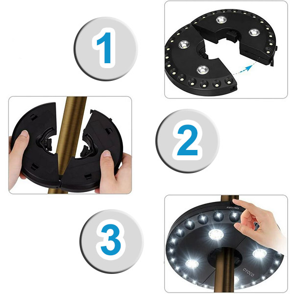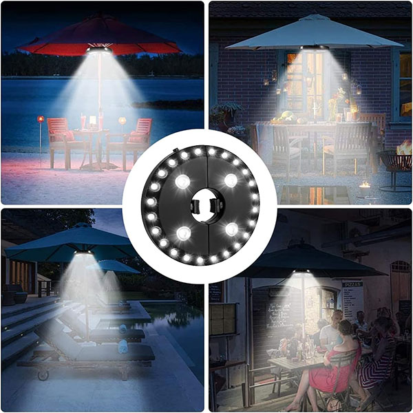 Im Gegensatz zu herkömmlichen Schirmlichtern funktioniert BRELLAGLO überall dort, wo Sie es benötigen. Klemmen Sie es an einen Schirm für Terrassenbeleuchtung oder verwenden Sie die integrierten Haken zum Aufhängen—ideal für Camping und Outdoor-Abenteuer.